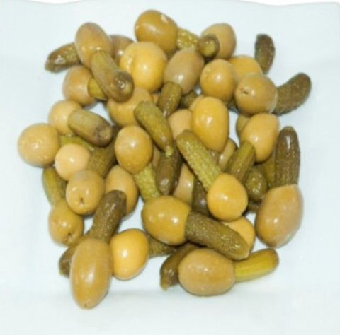 Ingredientes: aceitunas, pepinillos, agua y sal.